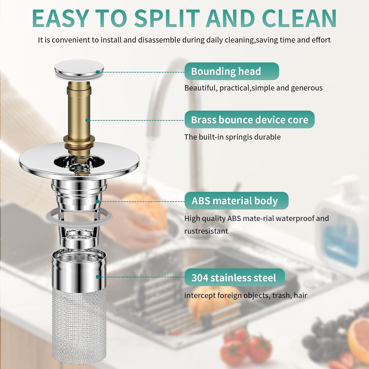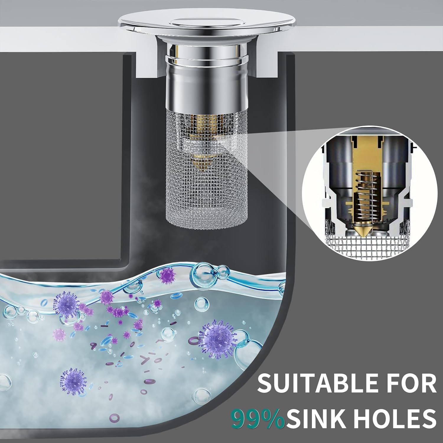 Works with most sinks, bathtubs, and shower drains. The pop-up stopper lets you switch between filtering and sealing in seconds.