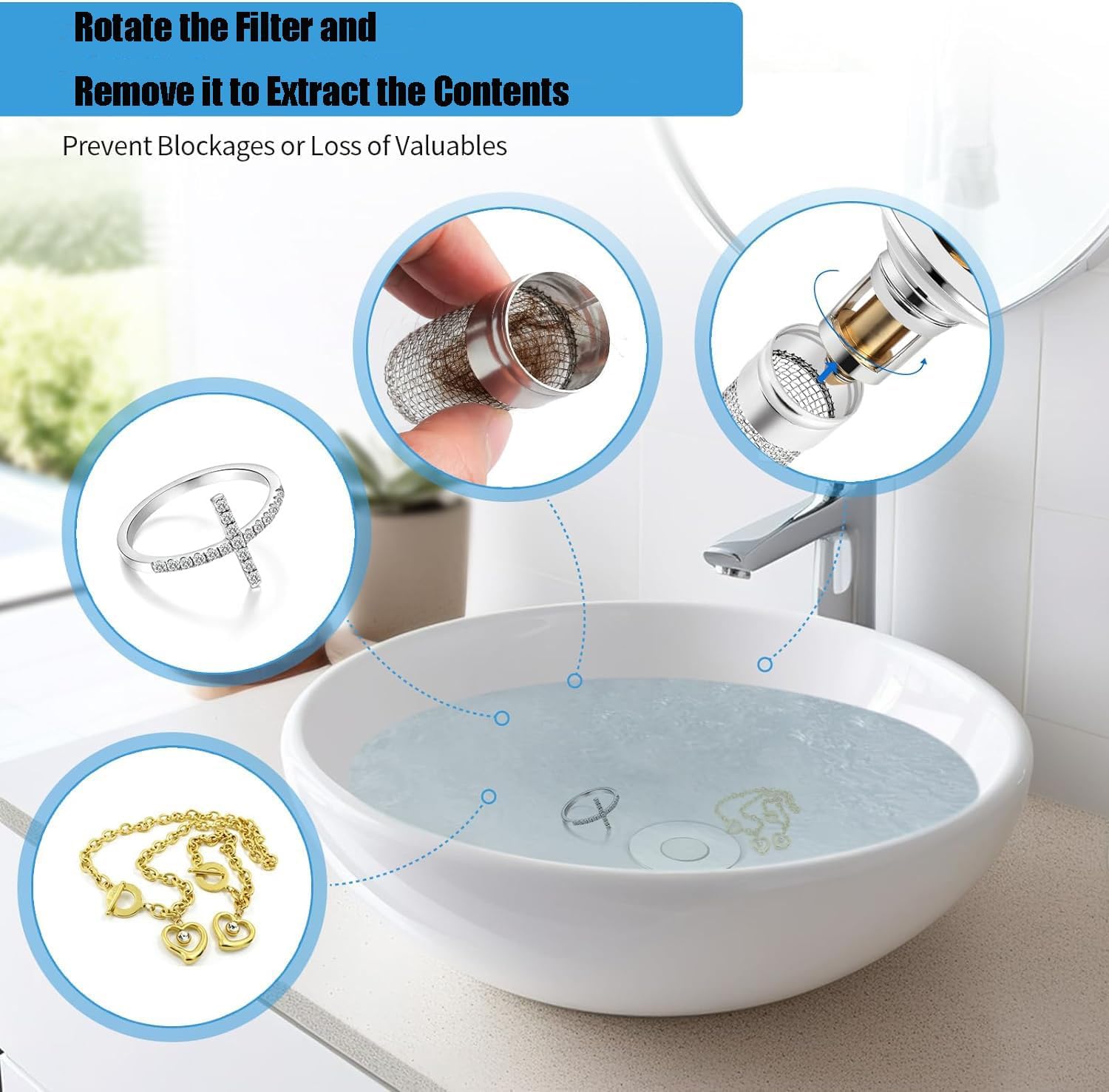 🌀 Catches hair before it clogs drains