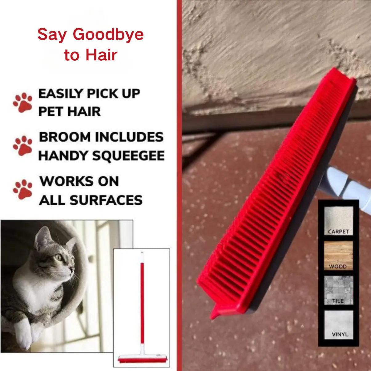 The flexible rubber bristles attract and trap pet hair better than traditional brooms — no more floating fur or missed spots.