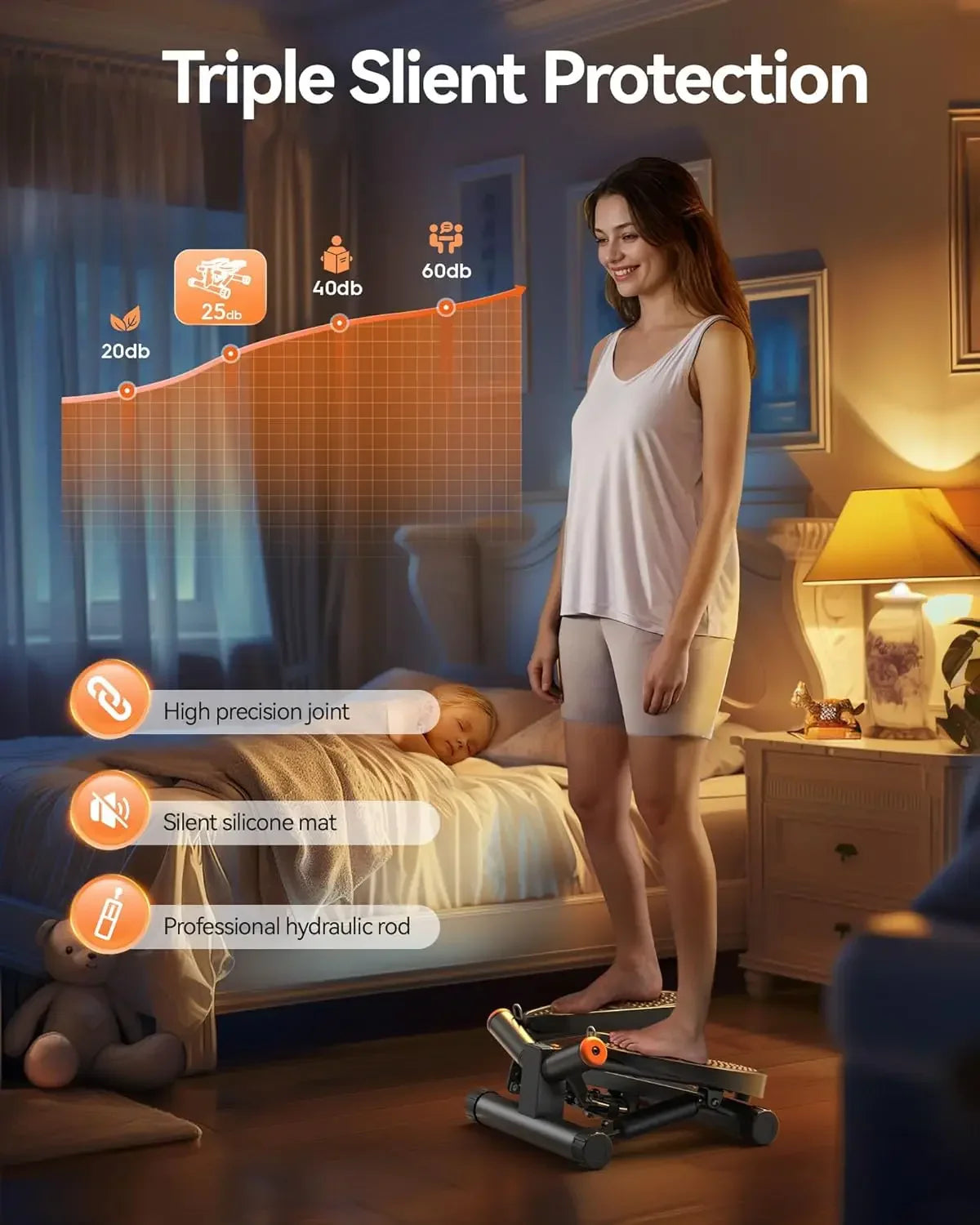 With its 300LBS loading capacity and adjustable hydraulic resistance, this mini stepper adapts to your fitness level, whether you’re just starting or looking to intensify your workout.