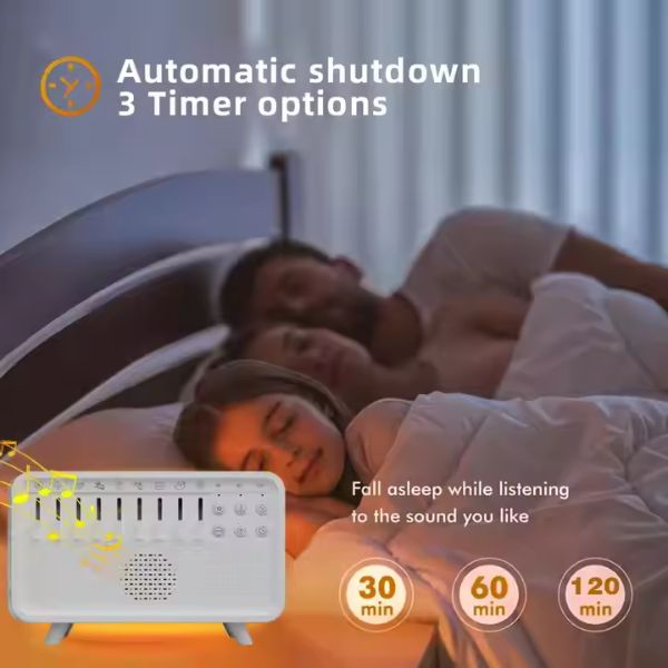 Choose from 8 white noise variations to calm your mind, block distractions, and help you or your baby drift into peaceful slumber.